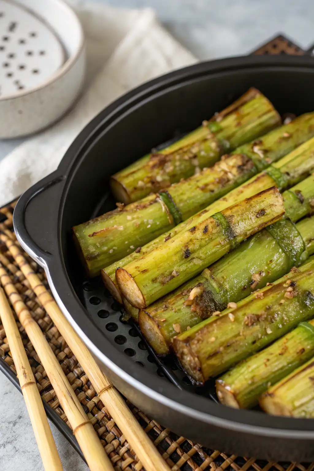 A: While best fresh, you can prepare and season the bamboo shoots ahead, then air fry them when ready to serve. This makes it convenient for meal prep or entertaining guests.