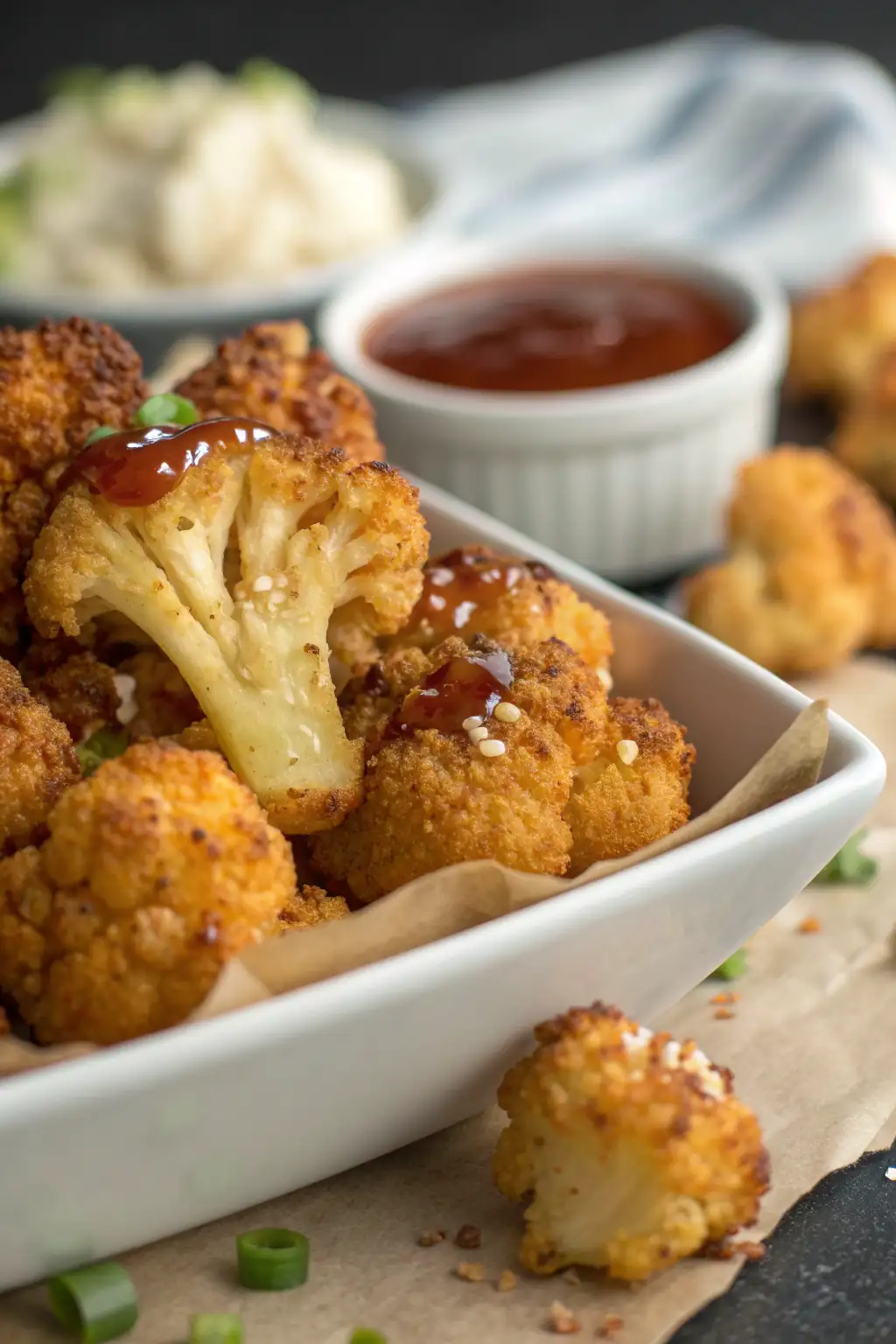 Suggestion 1: Pair with a garlic aioli as a dipping sauce for a savory appetizer. The creamy aioli complements the crispy cauliflower perfectly.
