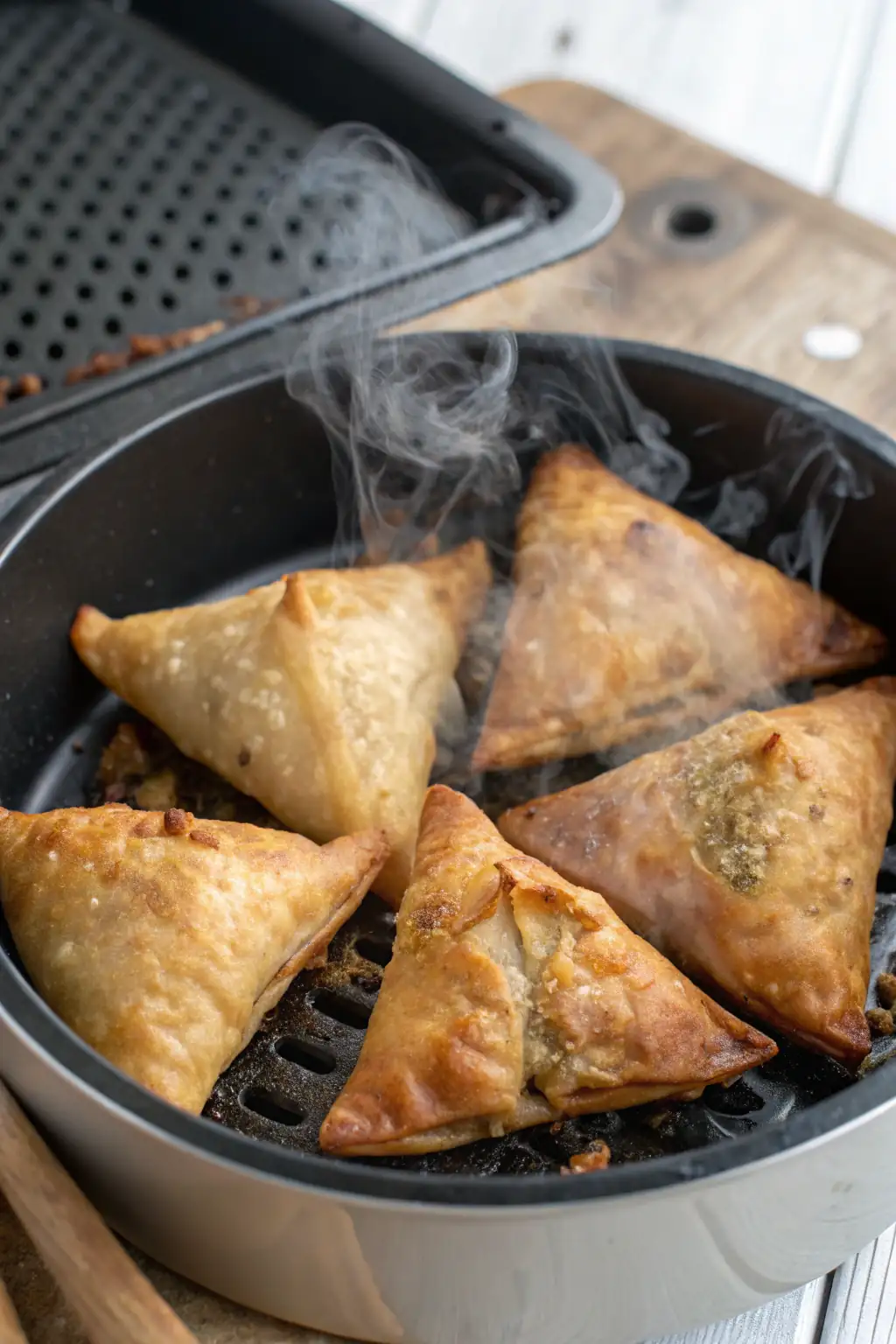 A: Store leftover samosas in an airtight container in the fridge for up to 3 days. Reheat in the air fryer for 3-5 minutes before serving. This keeps them crispy and fresh-tasting.