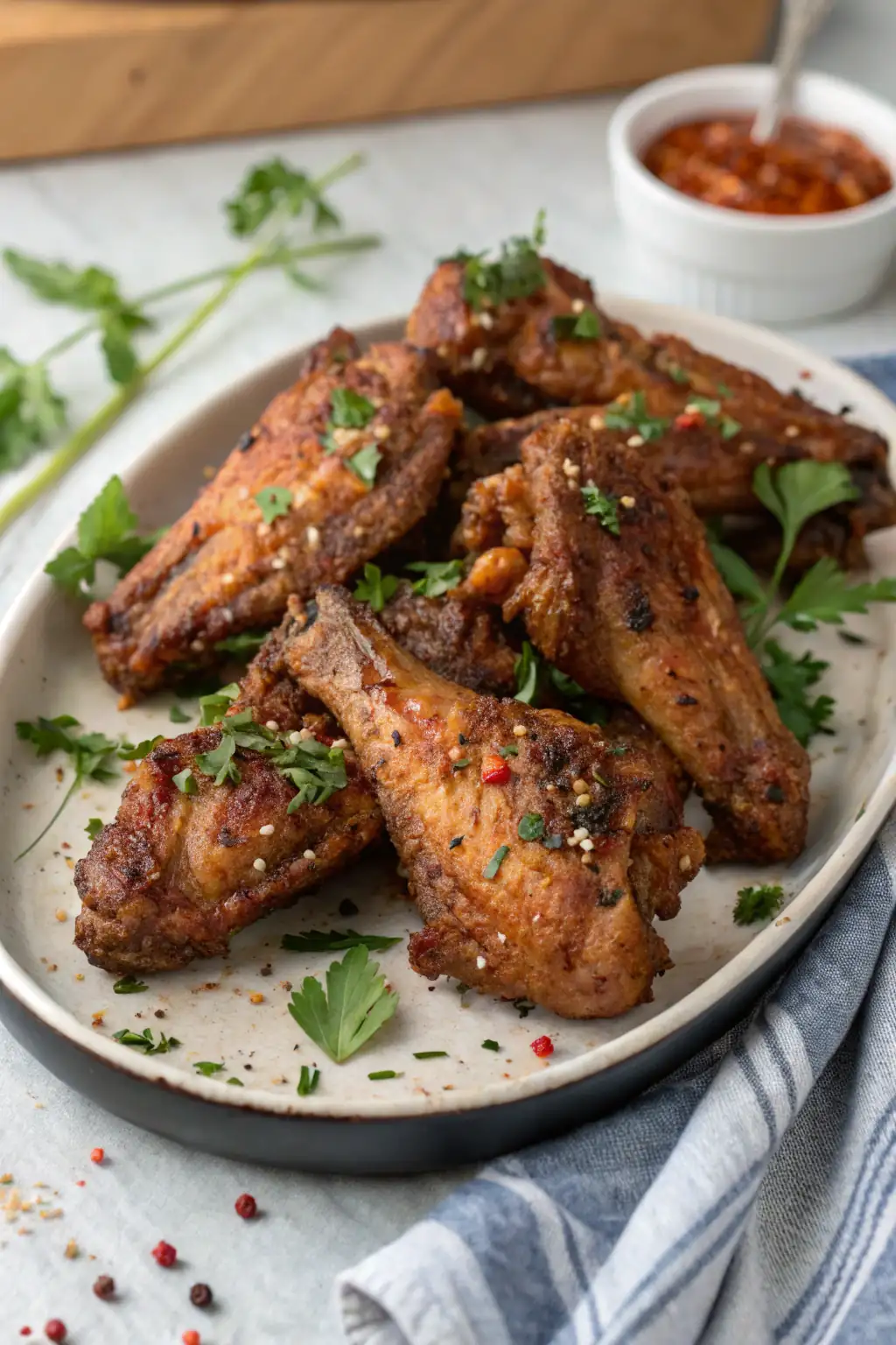 Once cooked, let the wings rest for 5 minutes before serving. Resting allows the juices to redistribute, resulting in a juicier bite.