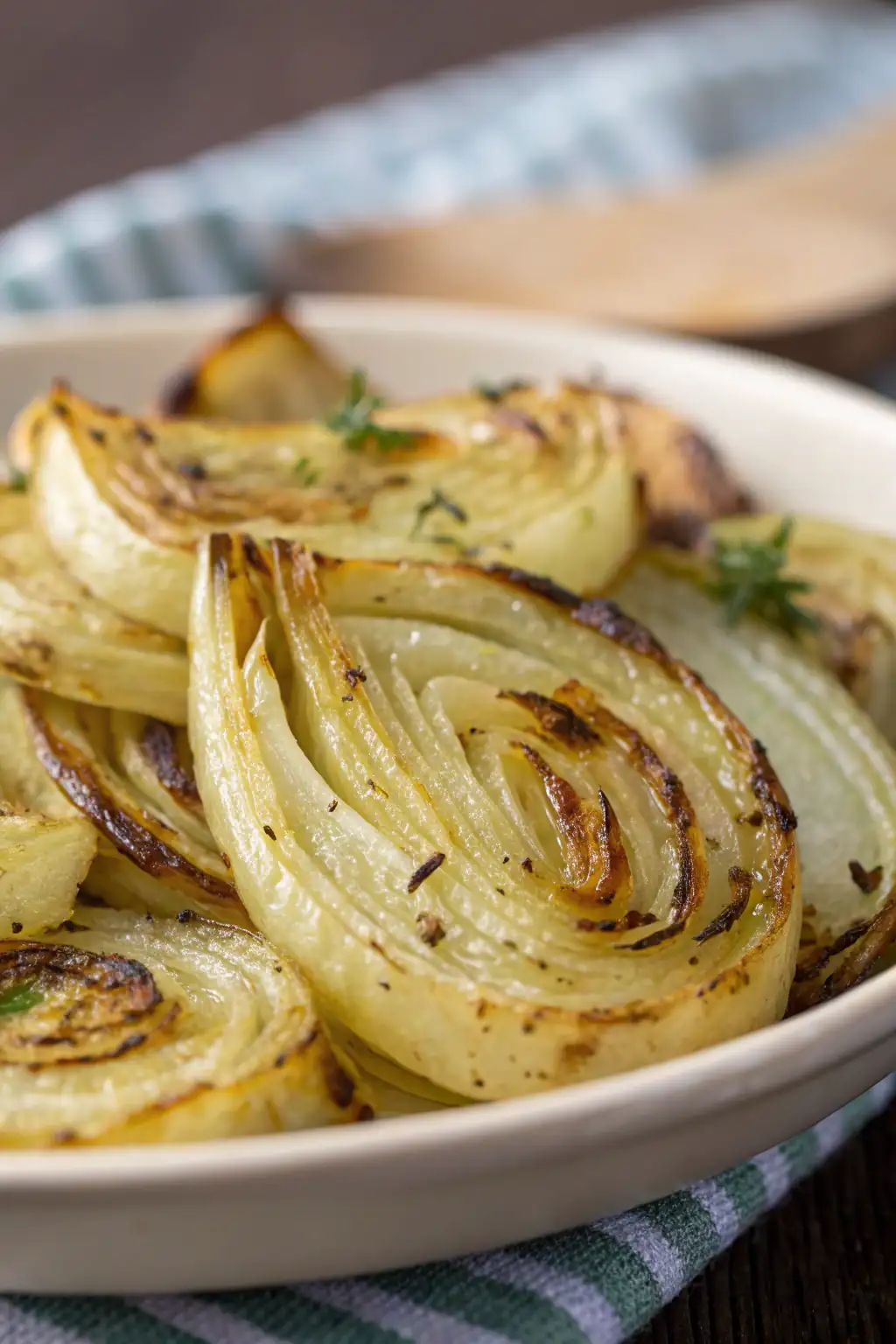 • Flavor: The combination of garlic powder, olive oil, and thyme envelops the fennel wedges in a savory, aromatic crust. The garlic powder adds depth without overpowering the natural taste of the fennel, while thyme offers an earthy note that rounds out the flavors beautifully.
