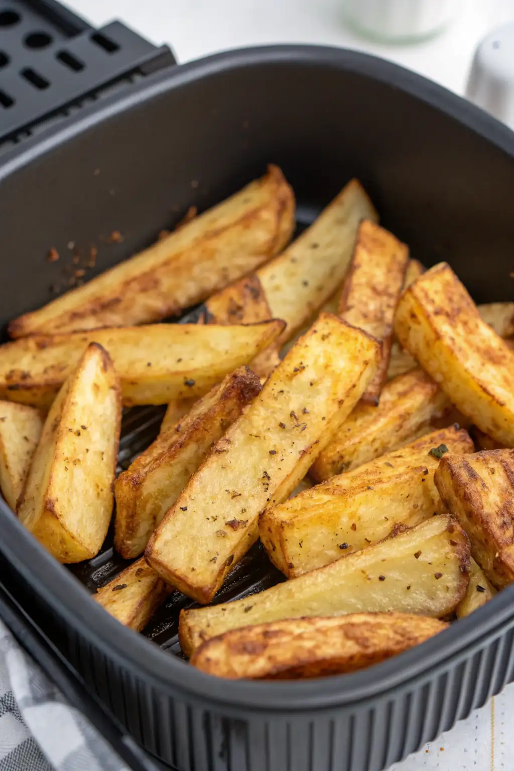 - Air fry for 15-20 minutes, shaking the basket halfway through for even cooking, until golden brown and tender.